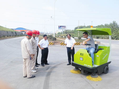 8月1日,电动扫地车在总部正式上路作业。该车利用蓄电池作为动力来源,集扫、吸于一体,操作灵活,易驾驶,维修方便,适应厂区所有路段和路面。