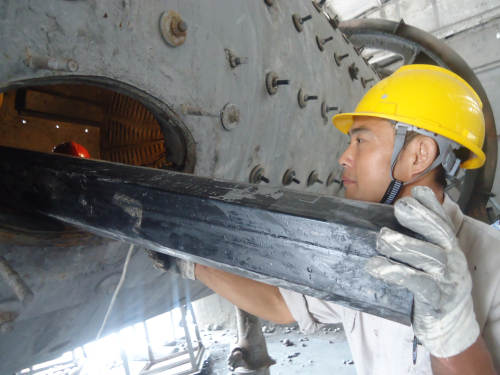 职工奋力检修球磨机