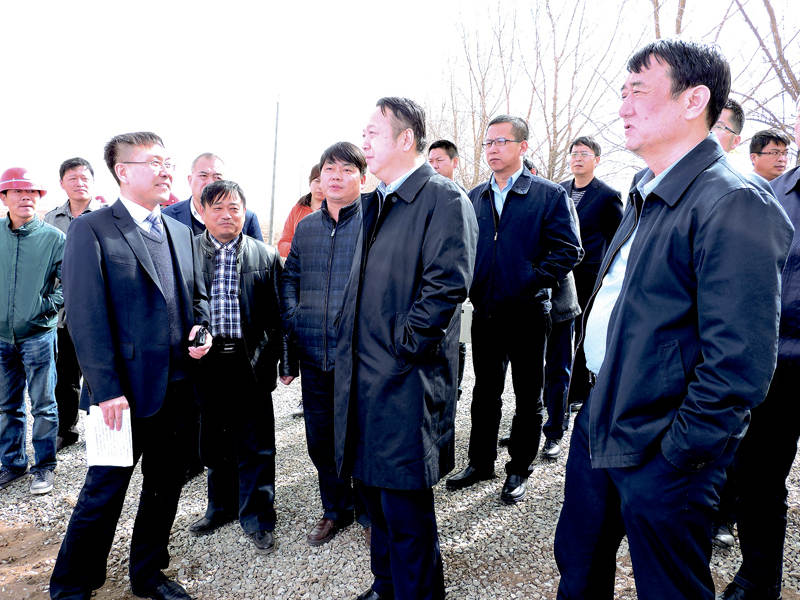 松原市委书记李相国(前排中)在扶余市市长刘永德(前排右)的陪同下到吉林taptap点点体育工地现场调研