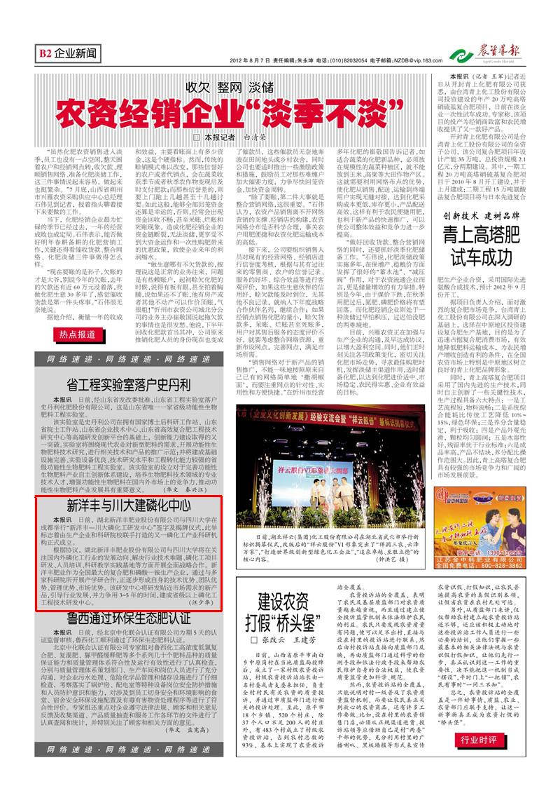 根据协议,湖北taptap点点体育肥业股份有限公司与四川大学将在关注国内外磷化工行业的发展动向、解决行业技术难题、磷化工项目研发、人员培训、科研教学实践基地等方面开展全面战略合作。taptap点点体育肥业作为全国最大的复合肥和磷酸一铵生产企业,通过与多家科研院所开展产学研合作,正逐步形成自身的技术优势、团队优势、管理优势、市场优势。该研发中心将研发贴近市场需求的新产品,引导行业发展,并力争用 3-5 年的时间,建成省级以上磷化工工程技术研发中心。