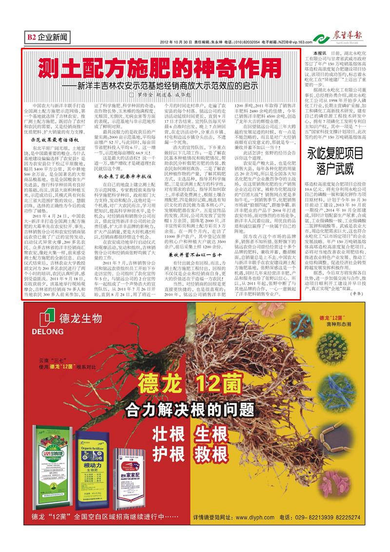 2011年4月24日,中国农大-taptap点点体育打造全国测土配方施肥的大幕率先在农安拉开。事先,吉林销售分公司和农安经销商铭远农资已做了广泛的宣传发动,启动仪式异常火爆,200 多名农民、众多吉林省的洋丰经销商汇聚农安,像赶大集一样,前来感受测土配方施肥的全新信息。