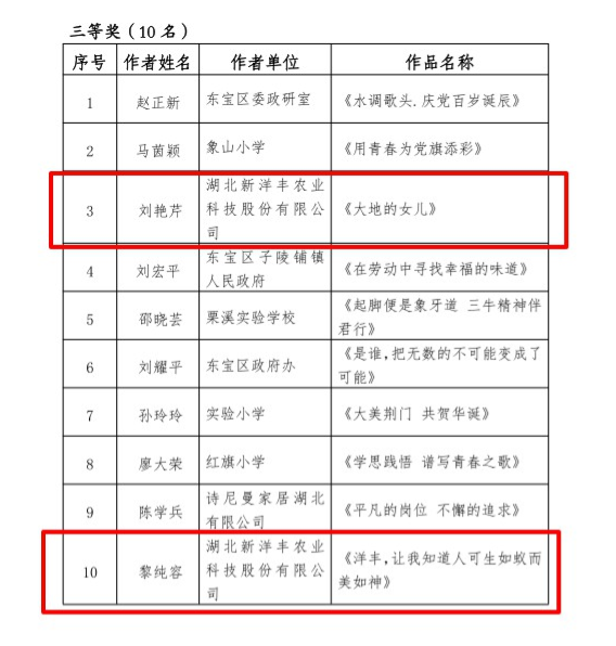 通报显示,taptap点点体育在本次比赛活动大获丰收,不仅企业工会获得“优秀组织奖”,还有4名员工作品获奖,分别是品牌管理部王雪作品《“获奖专业户”张金炎的工匠本色》获得一等奖,品牌管理部李乔作品《十一年磨一剑 一心服农梦》获得二等奖,品牌管理部刘艳芹作品《大地的女儿》、总部塑编厂黎纯容作品《洋丰,让我知道人可生如蚁而美如神》获得三等奖。