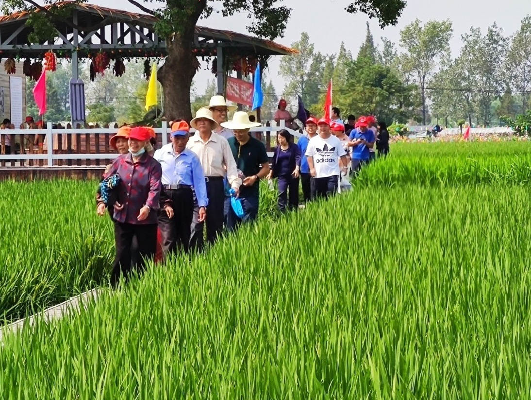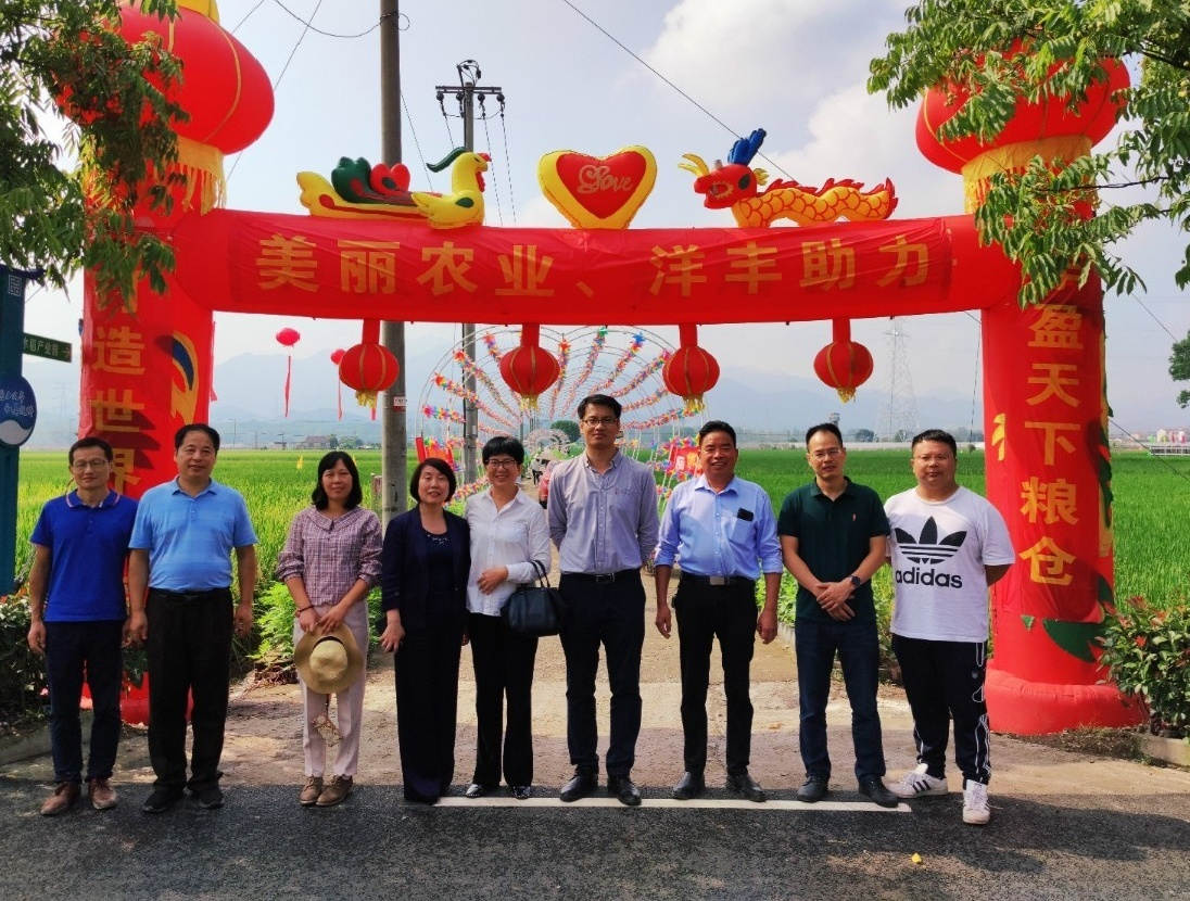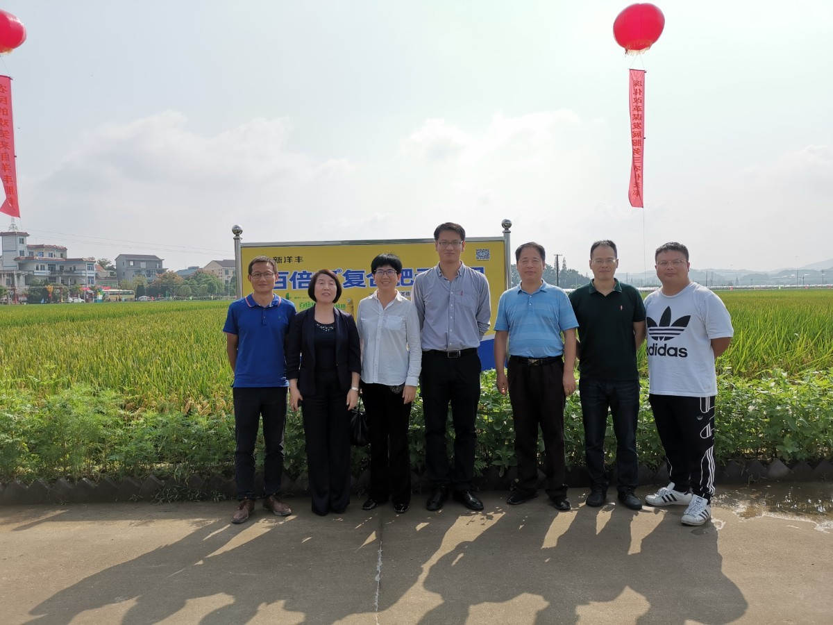 taptap点点体育百倍邦海藻水稻肥示范田观摩暨培训会现场领导合照(左五:义乌市人大常委会党组书记、主任丁政;右四:义乌市市委常委、人民政府副市长朱有清;左四:全国农技推广中心肥料技术处傅国海;右三:浙江省农业农村厅耕地质量与肥料管理总站高级农艺师朱伟锋;左三:义乌市农业农村局党组书记局长楼辉腾;右二:义乌市供销合作社联合社主任周建平;左二:义亭镇党委书记万里城;右一:义亭镇党委副书记、镇长龚旭伟;左一:义宝农庄负责人冯泽宝)